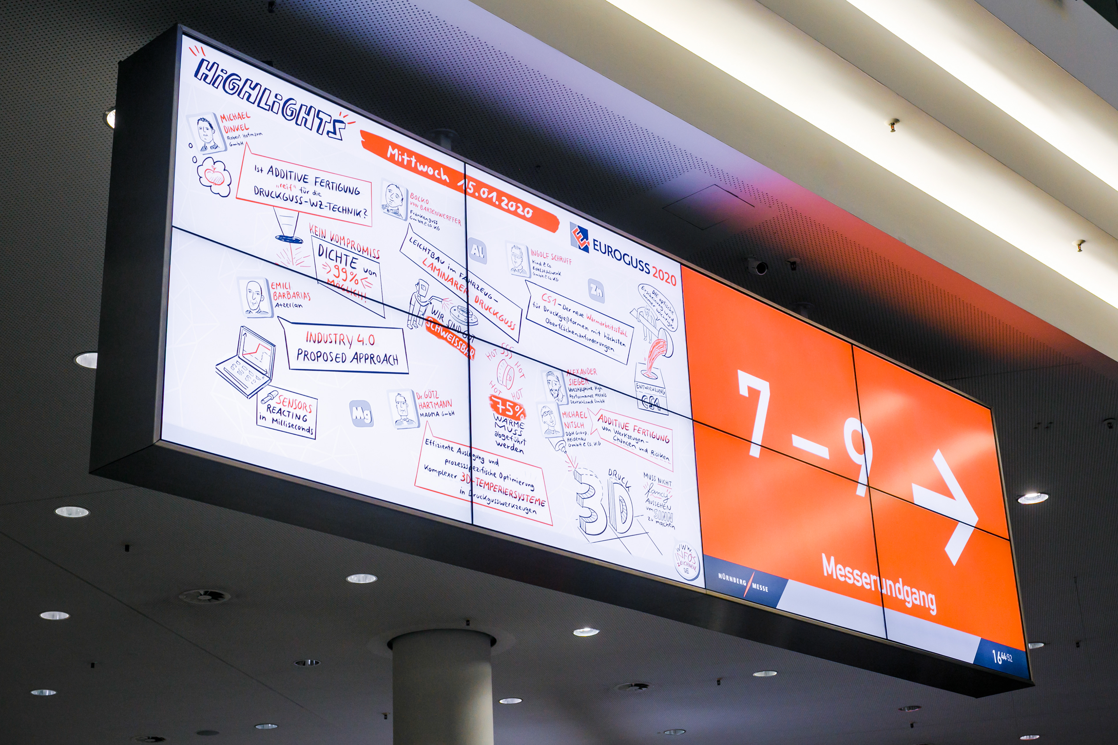 Graphic Recording für die Messe Euroguss 2020 in Nürnberg. Ich durfte ein Titelbild gestalten, die Fachvorträge der Druckgusstage visuell begleiten und Tageszusammenfassungen als Plakate gestalten. Sehr spannende, informative Messetage rund um eine innovative Branche!