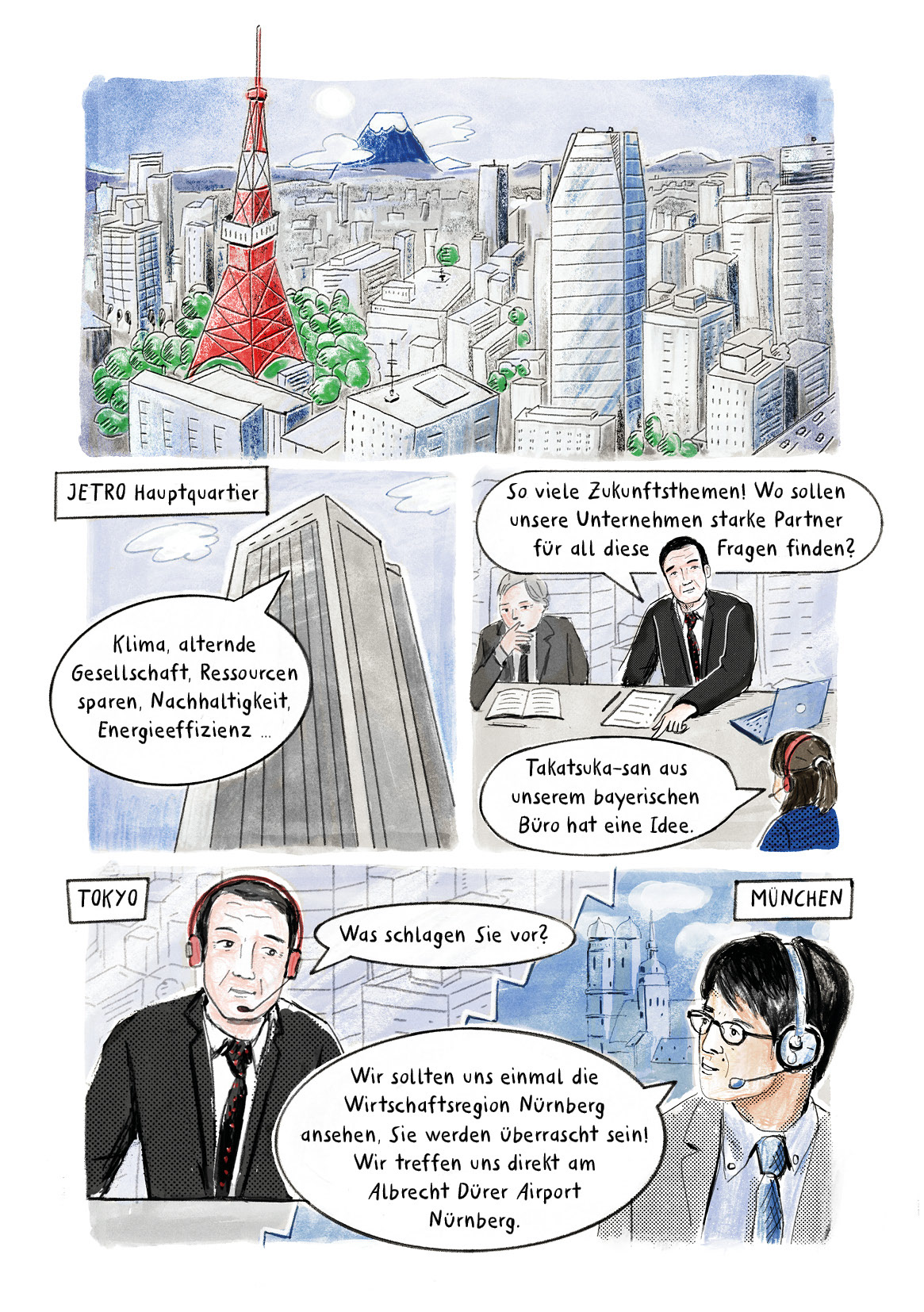 Mit dem Informations-Comic "Metropolregion Nürnberg und Japan" soll bei japanischen Geschäftsleuten das Interesse für die Metropolregion Nürnberg geweckt werden.